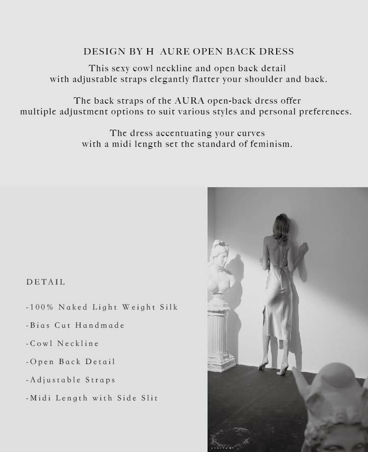 This sexy cowl neckline and open back detail with adjustable straps elegantly flatter your shoulder and back.The back straps of the AURA open-back dress offer multiple adjustment options to suit various styles and personal preferences.