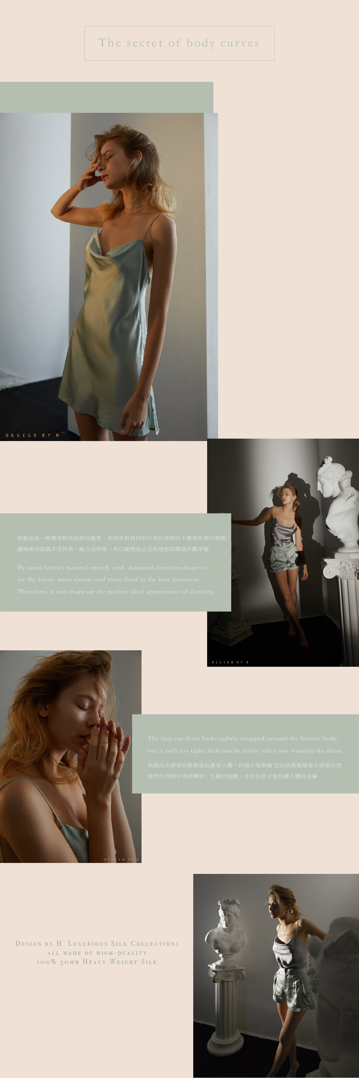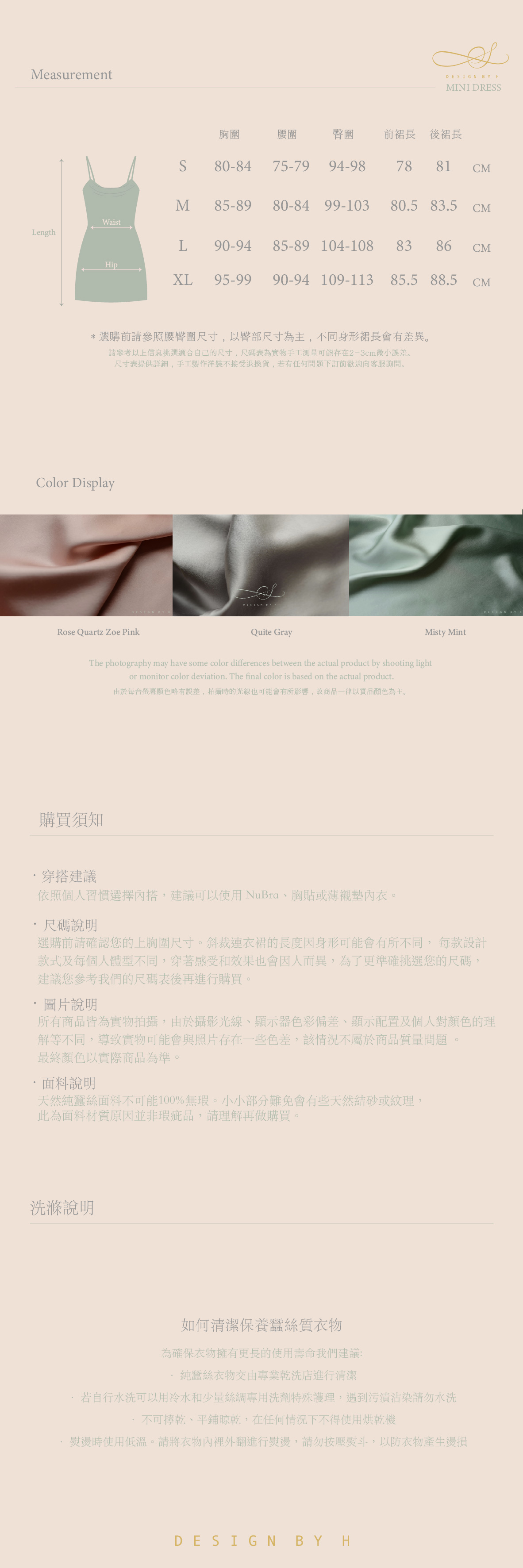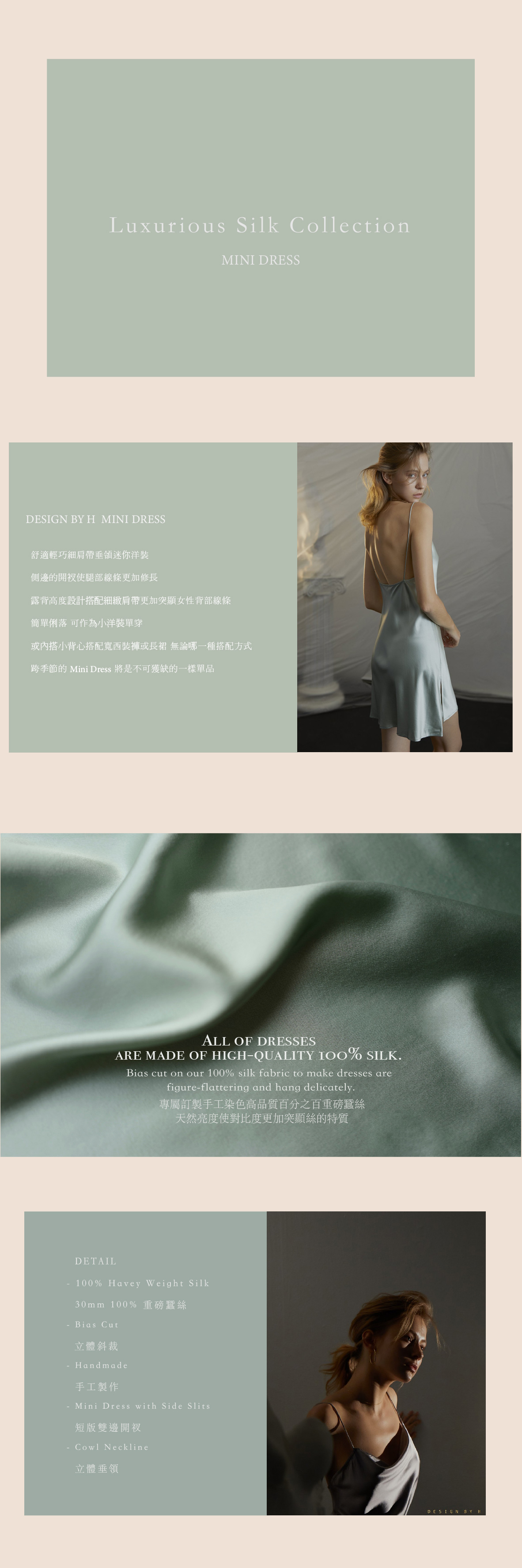 100% 重磅蠶絲 垂領露背 Mini Dress