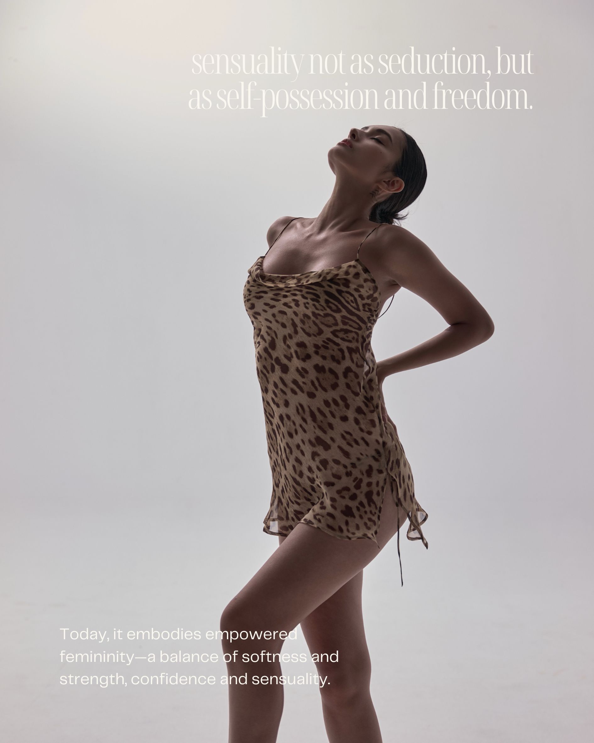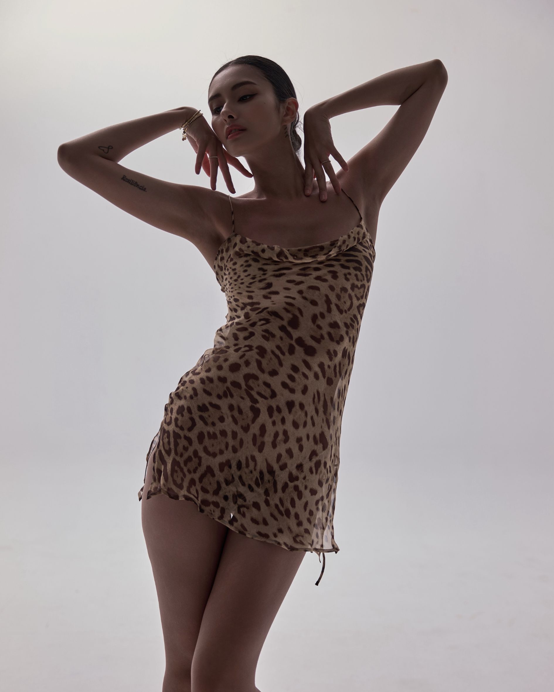 The Leopard Muse Mini Dress is crafted from 100% Premium Silk Fabric, offering a fluid touch that embodies refined sensuality.The side slits and bias cut elongate your silhouette, creating a graceful and fluid proportion.