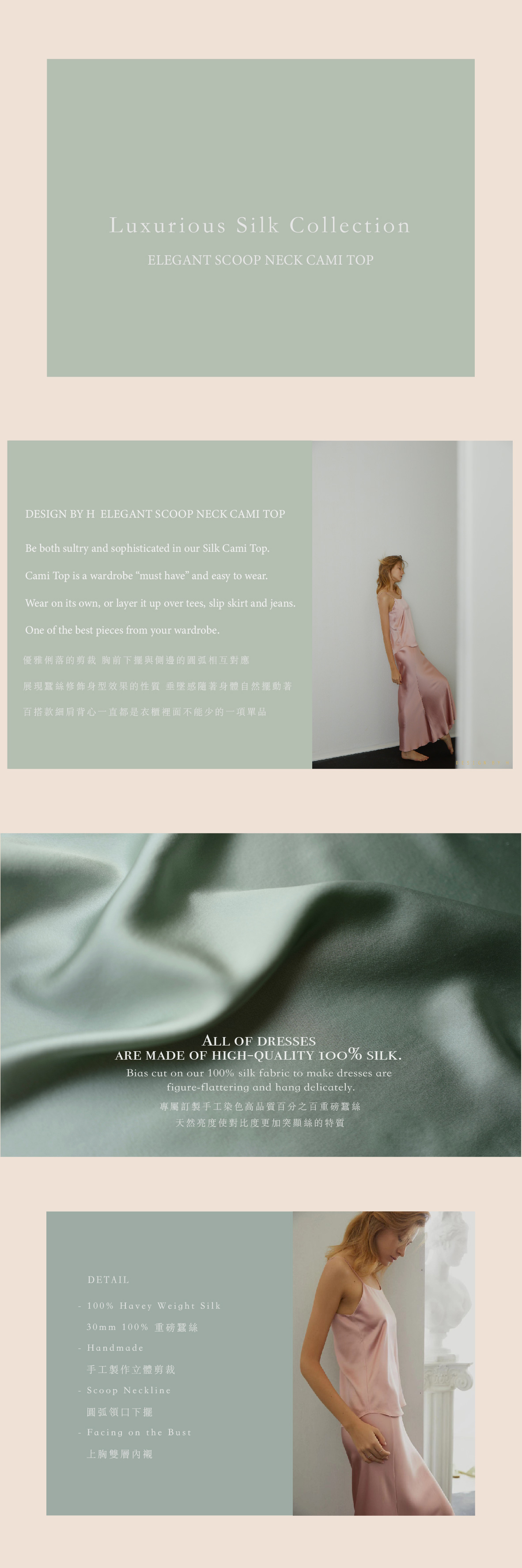 100% 重磅蠶絲 Cami 細肩帶圓弧背心
